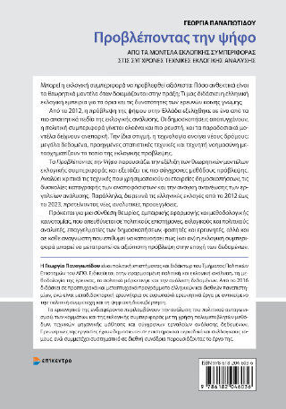Πρόκειται για μια σύνθεση θεωρίας, εμπειρικής εφαρμογής και μεθοδολογικής καινοτομίας, που απευθύνεται σε πολιτικούς επιστήμονες, εκλογικούς και πολιτικούς αναλυτές, επαγγελματίες των δημοσκοπήσεων, φοιτητές και ερευνητές, αλλά και σε κάθε αναγνώστη που επιθυμεί να κατανοήσει πώς (και αν) η εκλογική συμπεριφορά μπορεί να μετατραπεί σε αξιόπιστη πρόβλεψη στην εποχή των δεδομένων.