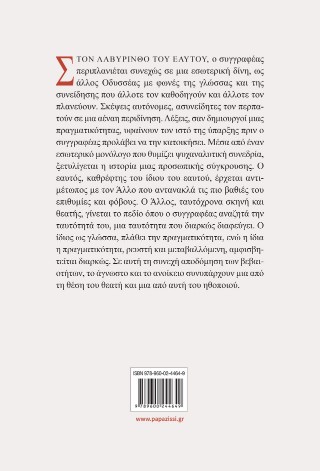 Στον λαβύρινθο του εαυτού, ο συγγραφέας περιπλανιέται συνεχώς σε μια εσωτερική δίνη, ως άλλος Οδυσσέας με φωνές της γλώσσας και της συνείδησης που άλλοτε τον καθοδηγούν και άλλοτε τον πλανεύουν. Σκέψεις αυτόνομες, ασυνείδητες τον περπατούν σε μια αέναη περιδίνηση. Λέξεις, σαν δημιουργοί μιας πραγματικότητας, υφαίνουν τον ιστό της ύπαρξης πριν ο συγγραφέας προλάβει να την κατοικήσει. Μέσα από έναν εσωτερικό μονόλογο που θυμίζει ψυχαναλυτική συνεδρία, ξετυλίγεται η ιστορία μιας προσωπικής σύγκρουσης. Ο εαυτός, καθρέφτης του ίδιου του εαυτού, έρχεται αντιμέτωπος με τον Άλλο που αντανακλά τις πιο βαθιές του επιθυμίες και φόβους. Ο Άλλος, ταυτόχρονα σκηνή και θεατής, γίνεται το πεδίο όπου ο συγγραφέας αναζητά την ταυτότητά του, μια ταυτότητα που διαρκώς διαφεύγει. Ο ίδιος ως γλώσσα, πλάθει την πραγματικότητα, ενώ η ίδια η πραγματικότητα, ρευστή και μεταβαλλόμενη, αμφισβητείται διαρκώς. Σε αυτή τη συνεχή αποδόμηση των βεβαιοτήτων, το άγνωστο και το ανοίκειο συνυπάρχουν μια από τη θέση του θεατή και μια από αυτή του ηθοποιού.