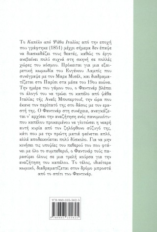 Το Καπέλο από Ψάθα Ιταλίας από την εποχή που γράφτηκε (1851) μέχρι σήμερα δεν έπαψε να διασκεδάζει τους θεατές, καθώς το έργο ανεβαίνει πολύ συχνά στη σκηνή σε πολλές χώρες του κόσμου. Πρόκειται για μια εξαιρετική κωμωδία του Ευγένιου Λαμπίς που συνέγραψε με τον Μαρκ Μισέλ, και διαδραματίζεται στο Παρίσι στα μέσα του 19ου αιώνα. Την ημέρα του γάμου του, ο Φαντινάρ βλέπει το άλογό του να τρώει το καπέλο από ψάθα Ιταλίας της Αναΐς Μποπερτουΐ, την ώρα που έκανε τον περίπατό της στο δάσος με τον εραστή της. Ο Φαντινάρ στη συνέχεια, αναγκάζεται ν' αρχίσει την αναζήτηση ενός πανομοιότυπου καπέλου προκειμένου να γλιτώσει η νεαρή αυτή κυρία από τον ζηλόφθονο σύζυγό της, κάτι που με την πρώτη ματιά φαίνεται απλό, αλλά αποδεικνύεται πολύ δύσκολο. Για να μην κινήσει τις υποψίες του πεθερού του που φτάνει με όλο το συμπεθεριό, ο Φαντινάρ τούς παρασύρει όλους σε μια τρελή κούρσα για την αναζήτηση του καπέλου. Το τέλος, ιδιαίτερα κωμικό, διαδραματίζεται στον δρόμο μπροστά από το σπίτι του Φαντινάρ.Λεπτομέρειες