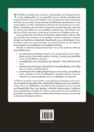 Το Ειδικές εκπαιδευτικές ανάγκες, συμπερίληψη και διαφορετικότητα έχει καθιερωθεί ως το εγχειρίδιο για τις ειδικές εκπαιδευτικές ανάγκες [ΕΕΑ]. Η νέα αυτή έκδοση, τρίτη αγγλική και πρώτη ελληνική, διατηρεί τη συνολική, περιεκτική και προσβάσιμη προσέγγισή της και παρουσιάζει τις πλέον πρόσφατες αλλαγές στις πολιτικές και τη νομοθεσία. Προσφέρει μια ελκυστική ισορροπία μεταξύ θεωρίας, έρευνας και πρακτικής καθώς και μια μοναδική ανάλυση των επιπτώσεων που έχει στις ΕΕΑ η γλωσσική, πολιτισμική και εθνοτική διαφορετικότητα.