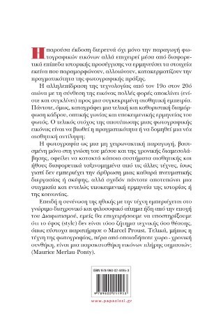 H παρούσα έκδοση διερευνά όχι μόνο την παραγωγή φωτογραφικών εικόνων αλλά επιχειρεί μέσα από διαφορετικά επίπεδα ιστορικής προσέγγισης να ερμηνεύσει τα στοιχεία εκείνα που παραμορφώνουν, αλλοιώνουν, κατακερματίζουν την πραγματικότητα της φωτογραφικής πράξης.